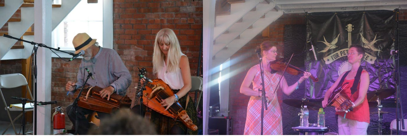 The festival once sported four stages, three main ones and one intimate stage called the Museum Stage. It was where lesser known artists played and where surprises . I saw a hurdy gurdy played by Donald and Anicet Heller. From two Swedish women I learned about their country’s native instrument the nyckelharpa.